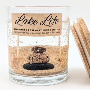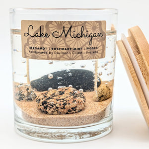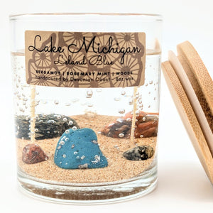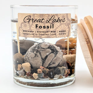 Devonian Coast gel candles capture the natural beauty of shoreline treasures in crystal-clear wax. Each candle contains a real specimen revealed as it burns — a lasting keepsake inspired by the Great Lakes.